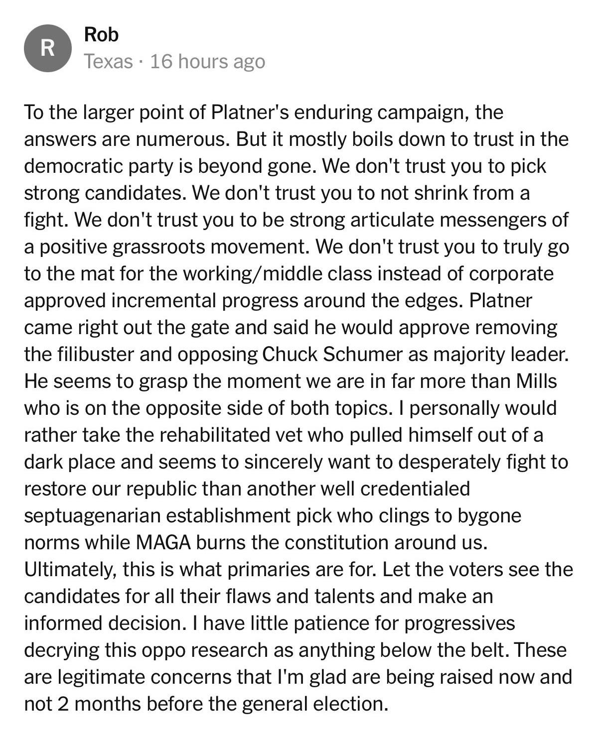 If Democrats keep treating candidates like Graham Platner as threats, they’ll prove every Rob from Texas right. The party’s biggest enemy isn’t the GOP, it’s its own fear of real people.